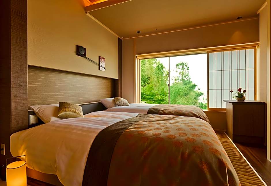 Guests will have a special experience as the twin room offers a private open-air bath. The twin room includes a private bathroom, well-fitted with a bath, a shower, a bidet, a hairdryer and slippers. The spacious air-conditioned twin room provides a flat-screen TV with streaming services, a tea and coffee maker, a seating area, a dining area as well as city views. The unit offers 2 beds.